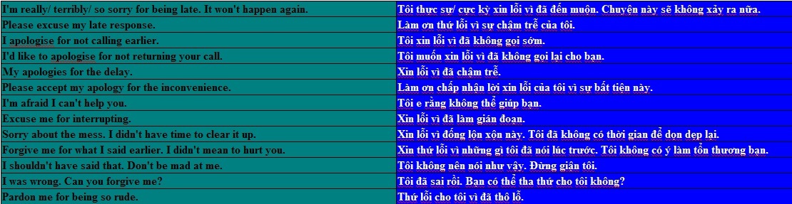 Dưới đây là những gợi ý thay cho câu nói quen thuộc "I'm sorry".