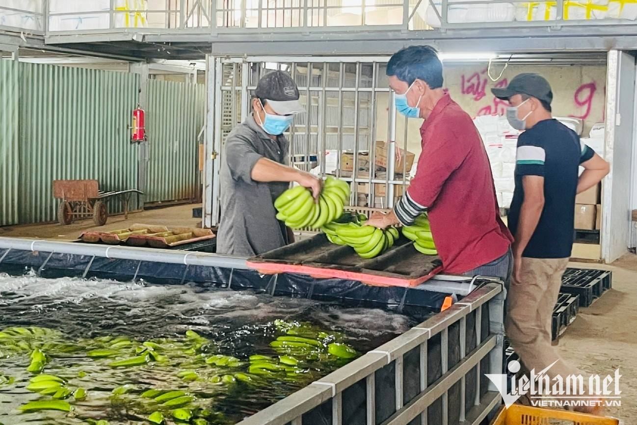 Các công nhân xử lý chuối xuất khẩu. Ảnh: Hoàng Anh