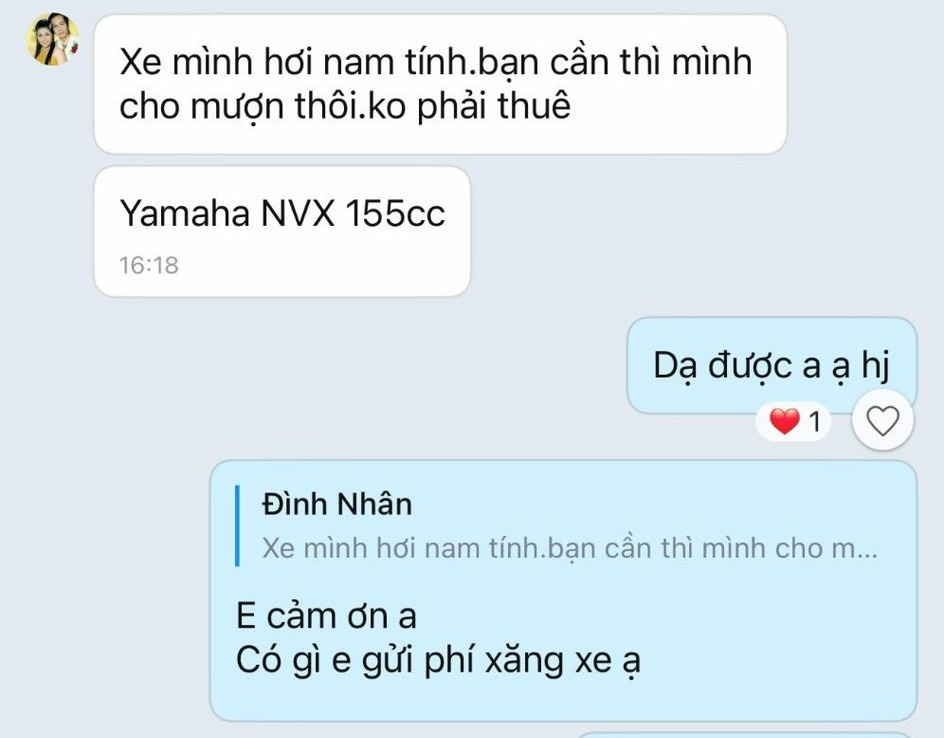 “Điều khiến tôi bất ngờ nhất là tất cả những người cho mượn xe đều không quen biết, nhưng ai cũng sẵn sàng giúp đỡ và không nhận tiền”, chị Lan Anh chia sẻ.