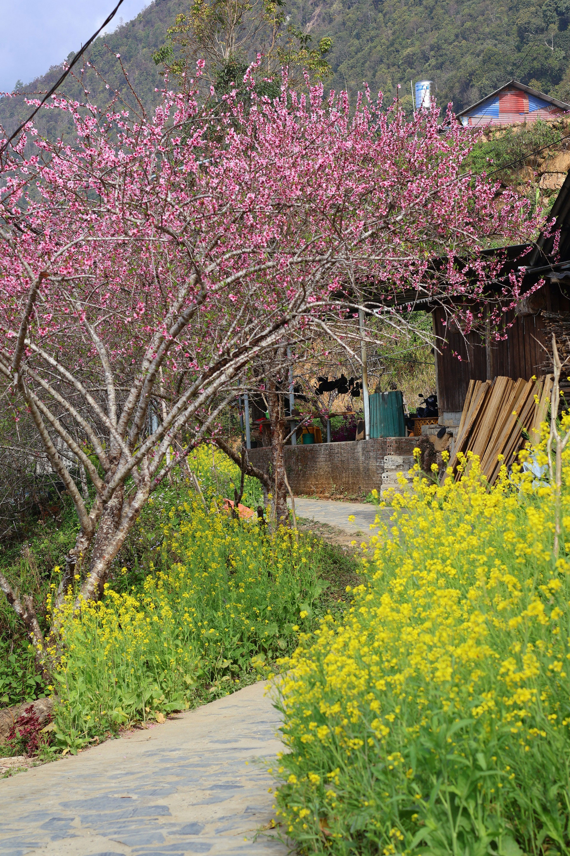 Những con đường quanh bản ngập sắc hoa. Ảnh: Lê Thu Thảo