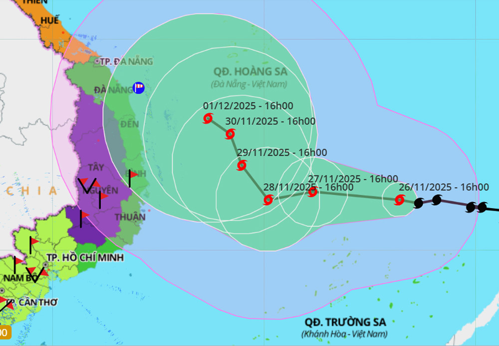 Với kịch bản này, vùng ven biển các tỉnh từ Đà Nẵng đến Lâm Đồng từ ngày 29/11 có thể xuất hiện gió mạnh cấp 8, giật cấp 10, sóng cao 3-5m, biển động mạnh. Đồng thời, khu vực này có khả năng xảy ra mưa lớn 150-250mm trong giai đoạn từ 29/11-1/12.