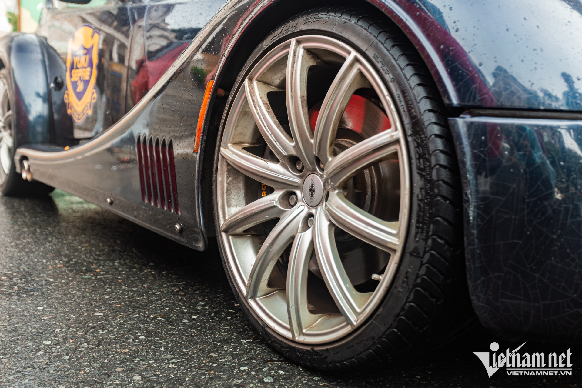 Chiếc Morgan Aero SuperSports này trang bị bộ mâm đa chấu đơn màu bạc, mang kích thước 19 inch, bên trong dùng đĩa phanh thép và cùm phanh màu đen. Đây là chi tiết tạo làm nên sự khác biệt với chiếc Aero SuperSports màu trắng, vốn dùng bộ mâm đa chấu kép sơn màu đen.