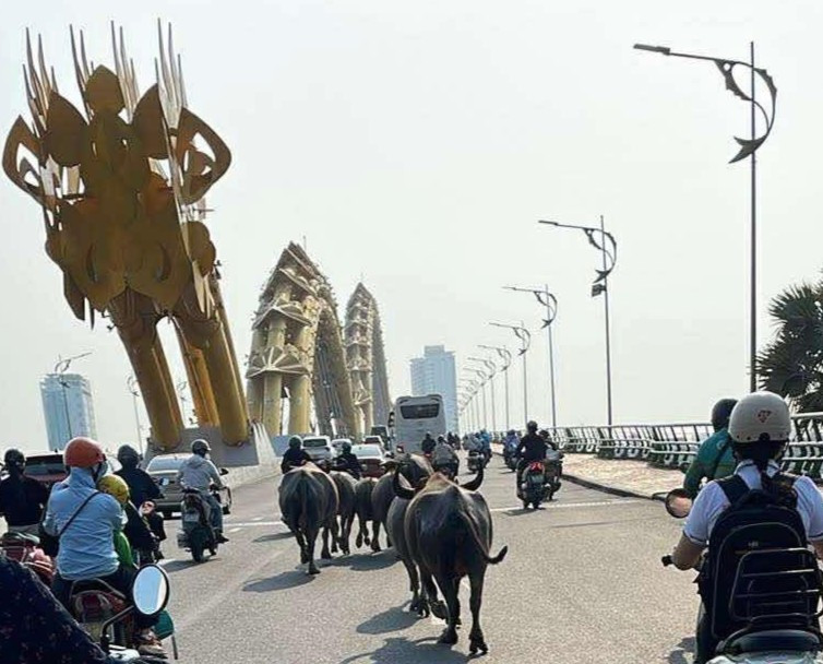 Theo đó, vào sáng sớm cùng ngày, khoảng 8 con trâu được phát hiện di chuyển trên các tuyến đường trung tâm TP Đà Nẵng. Sự xuất hiện của đàn trâu khiến nhiều người tham gia giao thông phải giảm tốc, chủ động tránh né để đảm bảo an toàn.