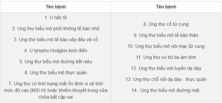 Tuy nhiên, theo đại diện bệnh viện, không phải người nào mắc các bệnh ung thư được liệt kê ở trên cũng được chỉ định dùng thuốc có hoạt chất pembrolizumab. Việc sử dụng pembrolizumab còn phụ thuộc vào nhiều yếu tố như: Thể trạng người bệnh, loại đột biến của khối u, giai đoạn bệnh…