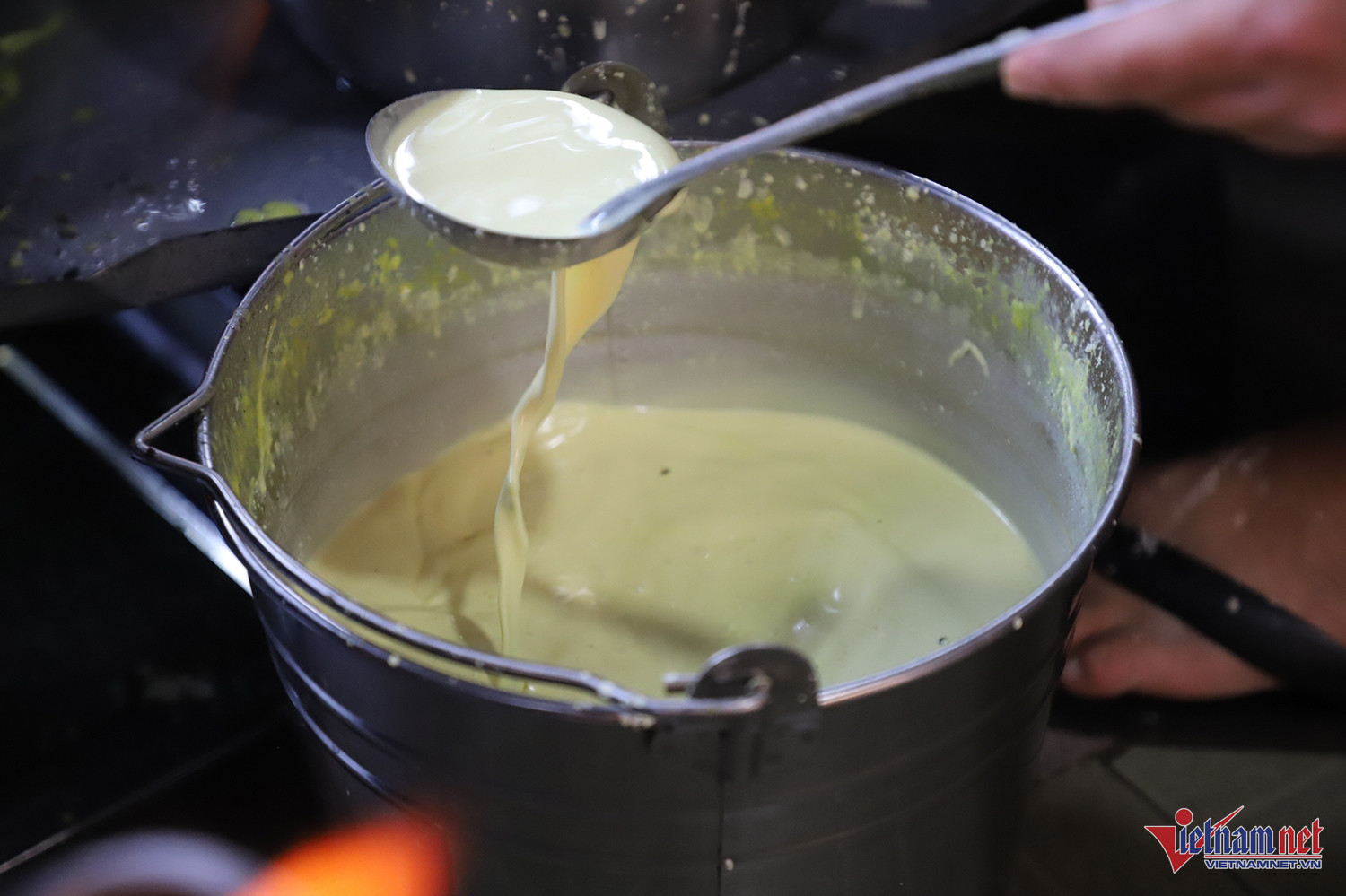 “Mỗi ngày tôi đến chùa từ 5h để nhóm lửa, có khách thì đổ bánh, càng đông càng vui. Ai mệt thì người khác vào thay. Bếp chỉ nghỉ khi hết khách, còn bột và nguyên liệu lúc nào cũng chuẩn bị sẵn”, anh cười nói.