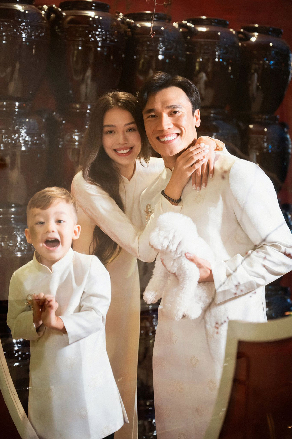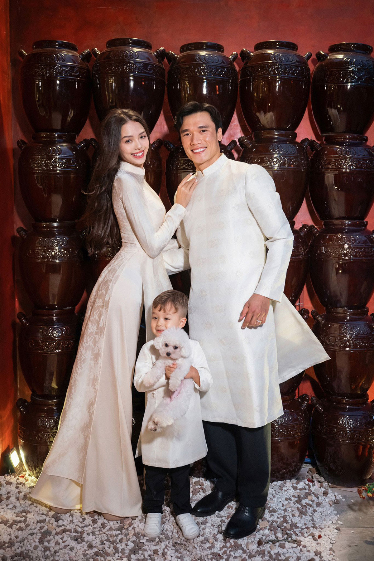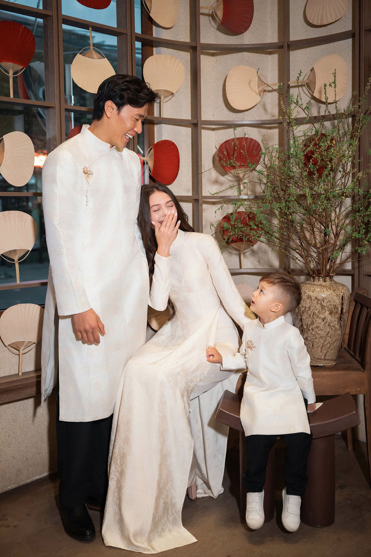 Thủ thành Bùi Tiến Dũng cùng vợ mẫu Tây và con trai tung bộ ảnh cực đẹp đón Tết Bính Ngọ 2026.