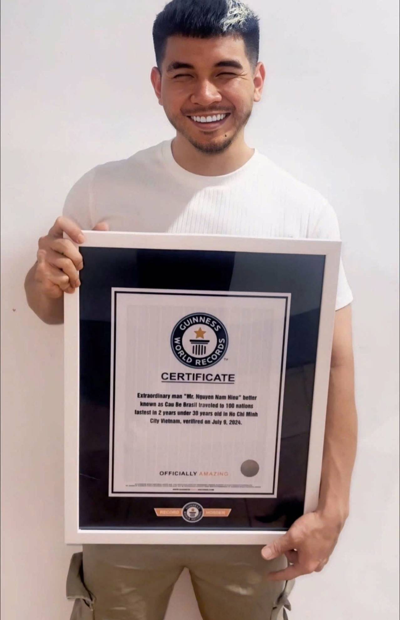 Brasil Nguyễn được Tổ chức Guinness công nhận là Người Việt Nam đi 100 quốc gia trong 2 năm, dưới 30 tuổi.