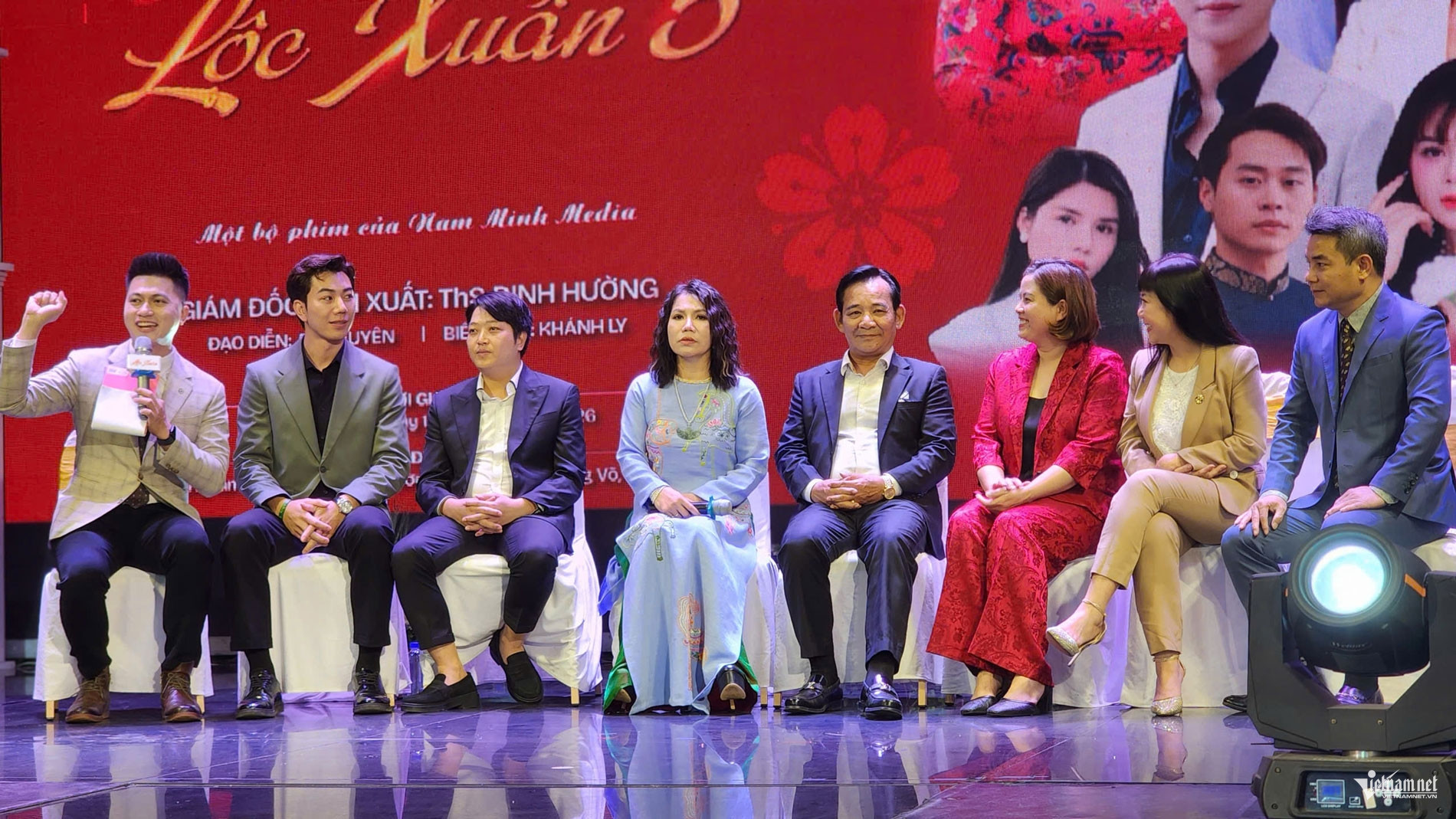 Ê-kíp sản xuất và các nghệ sĩ tham gia tại họp báo ra mắt phim "Lộc Xuân 5".