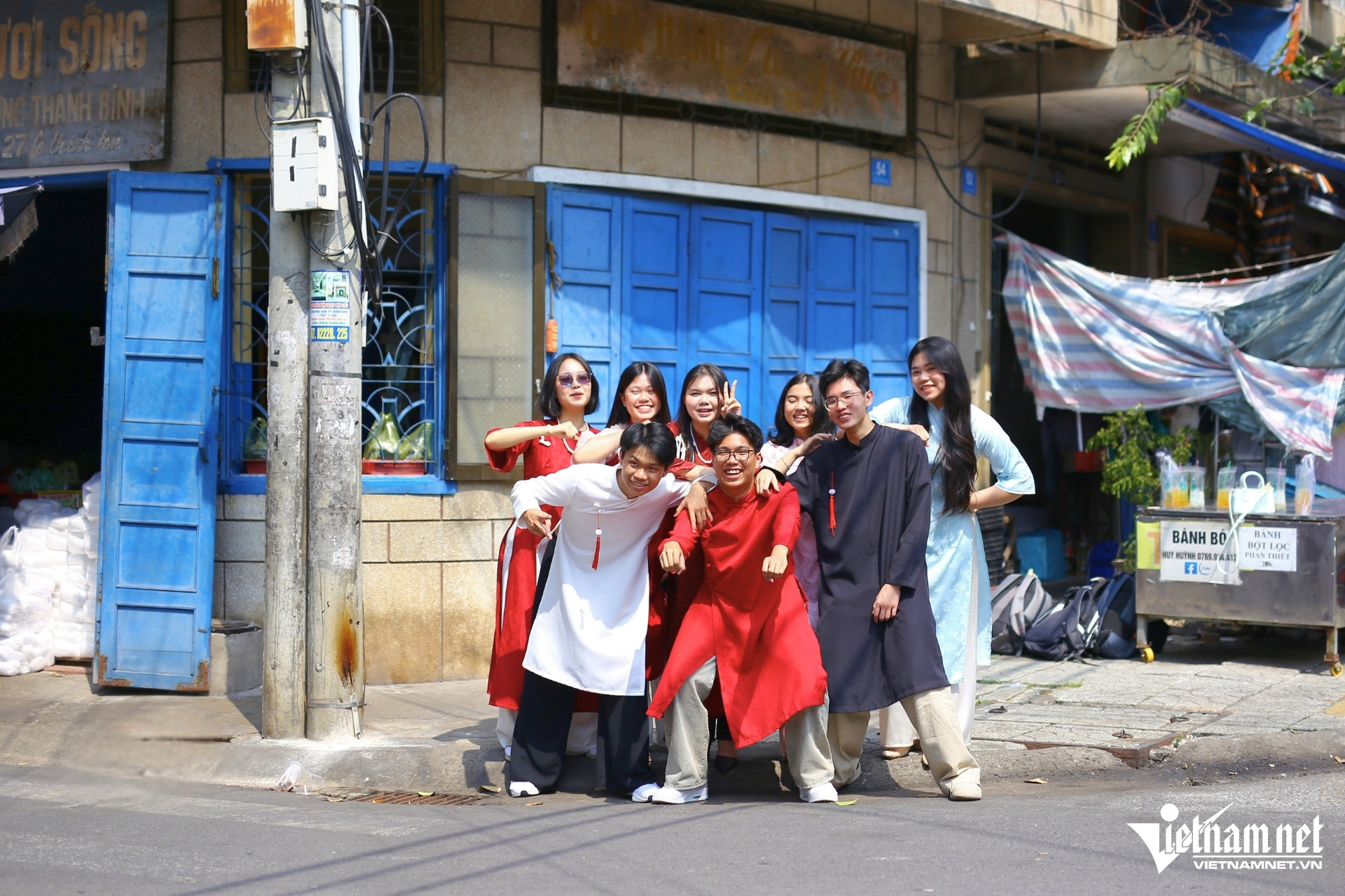 Còn 3 tuần nữa là đến tết Nguyên đán 2026, chợ Biên Hòa (phường Trấn Biên, tỉnh Đồng Nai) trở thành điểm hẹn của giới trẻ trong tà áo dài phong cách xưa, lưu giữ khoảnh khắc Tết