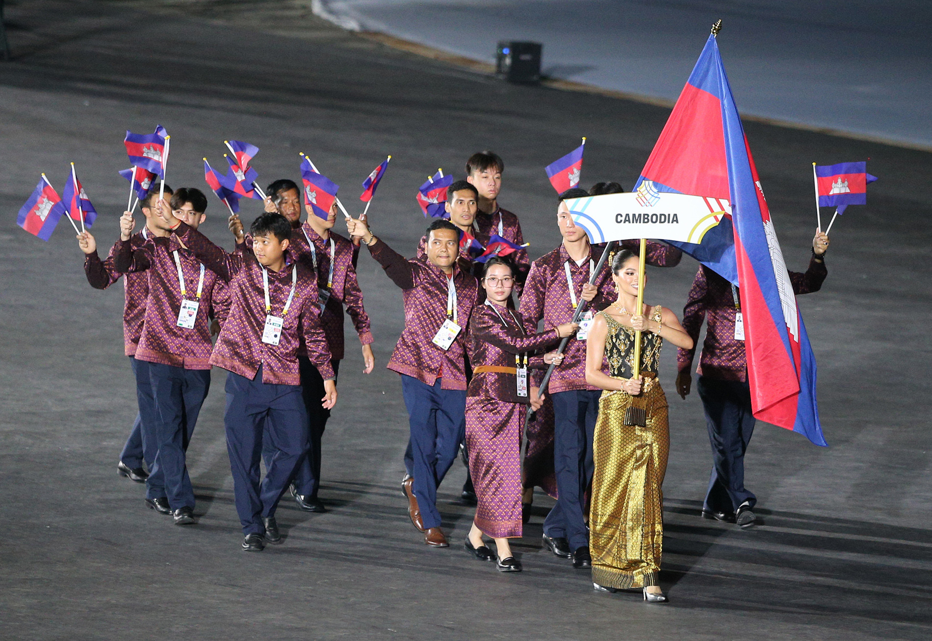 Đoàn Campuchia tham dự lễ khai mạc SEA Games 33 vào tối 9/12. Ảnh: S.N