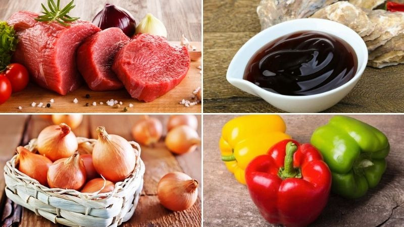 Tỏi bóc vỏ, rửa sạch, băm nhỏ. Hành lá rửa sạch, cắt khúc vừa ăn. Hành tây, ớt chuông rửa sạch cắt miếng vuông vừa ăn (khoảng 1 đốt tay). Khoai tây gọt vỏ rửa sạch và cắt thành thanh dài khoảng 3 đốt tay rồi ngâm với nước muối loãng khoảng 15 phút.