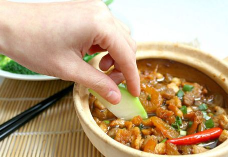 Phần thịt được chọn phải là thịt ba chỉ và không nên có quá nhiều mỡ. Vì nếu chỉ mỡ không thì khi chế biến sẽ phải bỏ bớt phần nước mỡ đi, còn thịt ba chỉ có vừa lượng mỡ cần thiết.