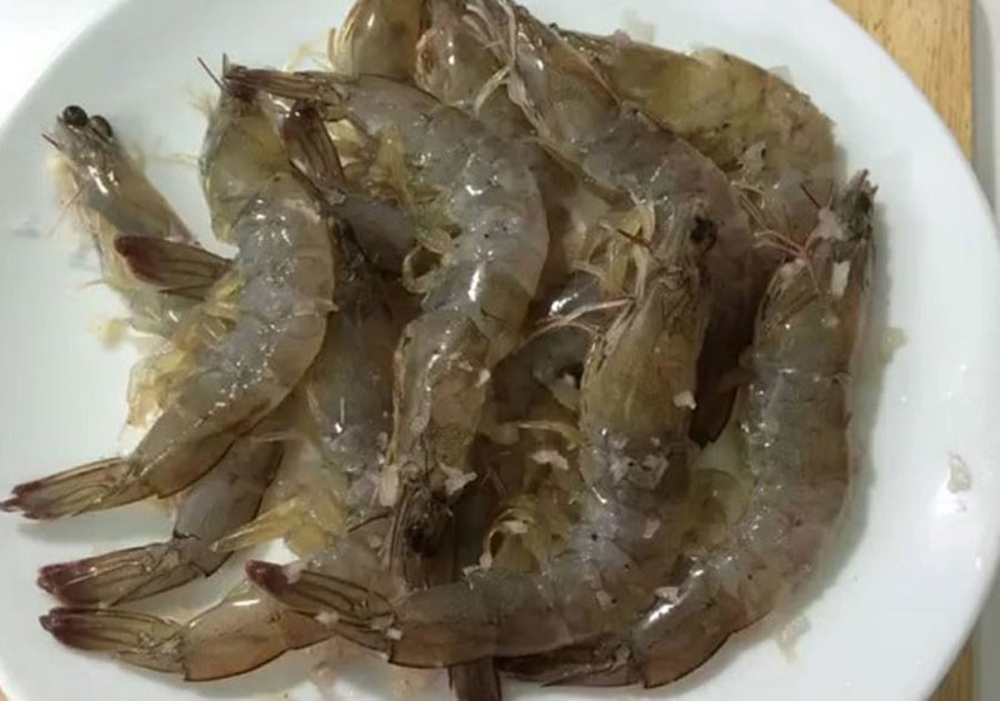Nhấn ngón tay nhẹ và di chuyển trên vỏ tôm thấy cộm như có sạn trong vỏ hoặc tôm đã chảy nhớt thì không nên mua.