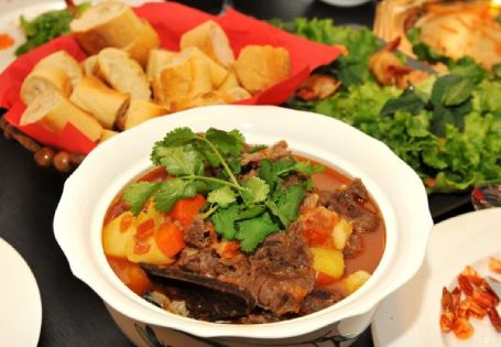 Bạn có thể ăn bò sốt vang với bún, bánh mì hoặc với cơm nóng đều rất ngon.