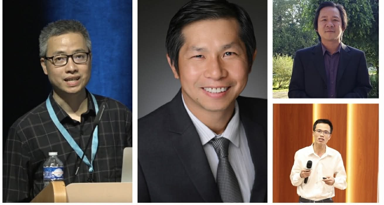 Giáo sư Phan Thành Nam, Nguyễn Công Phúc, Nguyễn Trọng Toán, Nguyễn Hoài Minh (từ trái sang phải) là những cựu sinh viên của Trường ĐH Khoa học Tự nhiên TPHCM. Ảnh: ĐH Quốc gia TPHCM