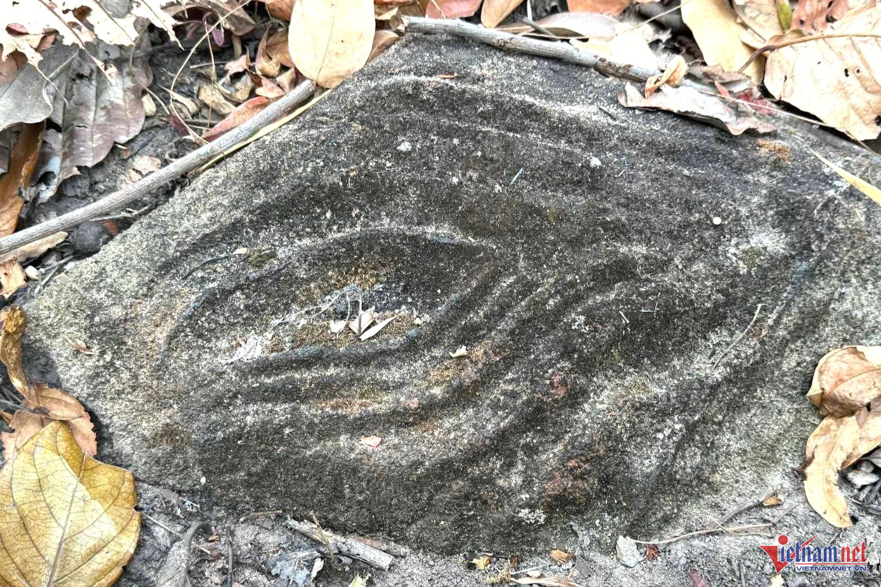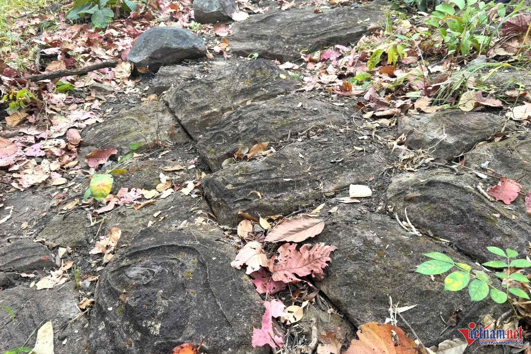 Tại hiện trường, lực lượng chức năng ghi nhận nhiều viên đá được sắp xếp ngay ngắn. Trên bề mặt các phiến đá xuất hiện nhiều họa tiết độc đáo như hình xoắn ốc, đường nét uốn lượn, hình lá và hình sóng nước... Các nét chạm khắc ăn sâu vào đá, tạo nên sự bí ẩn giữa rừng sâu.