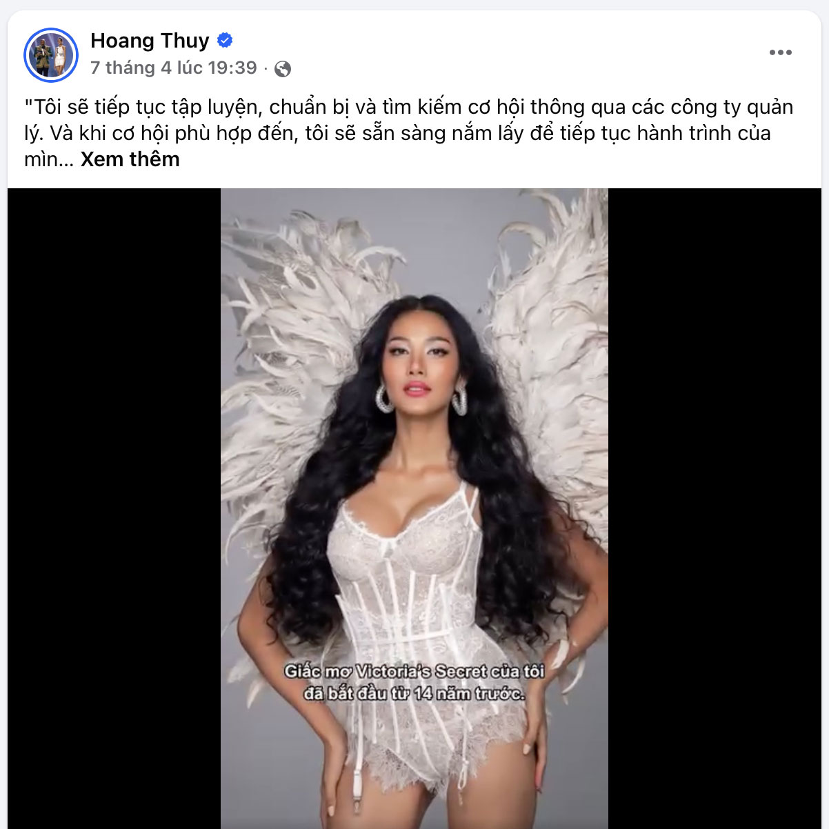 Cô cho biết: "Tôi sẽ tiếp tục tập luyện, chuẩn bị và tìm kiếm cơ hội thông qua các công ty quản lý. Và khi cơ hội phù hợp đến, tôi sẽ sẵn sàng nắm lấy để tiếp tục hành trình của mình đến với Victoria's Secret và nhiều cột mốc lớn hơn nữa".