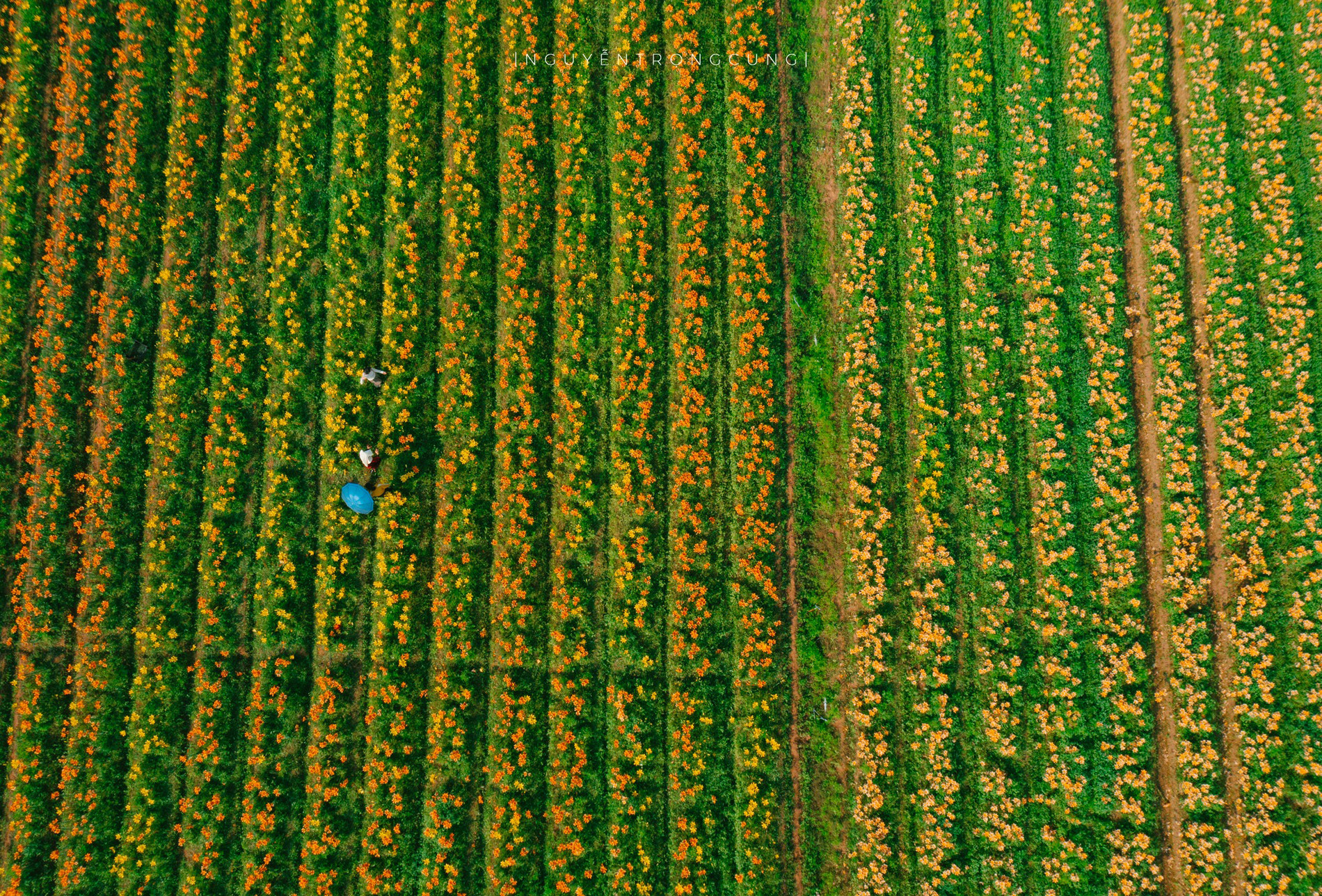 Cánh đồng hoa ly nhìn từ trên cao gây ấn tượng