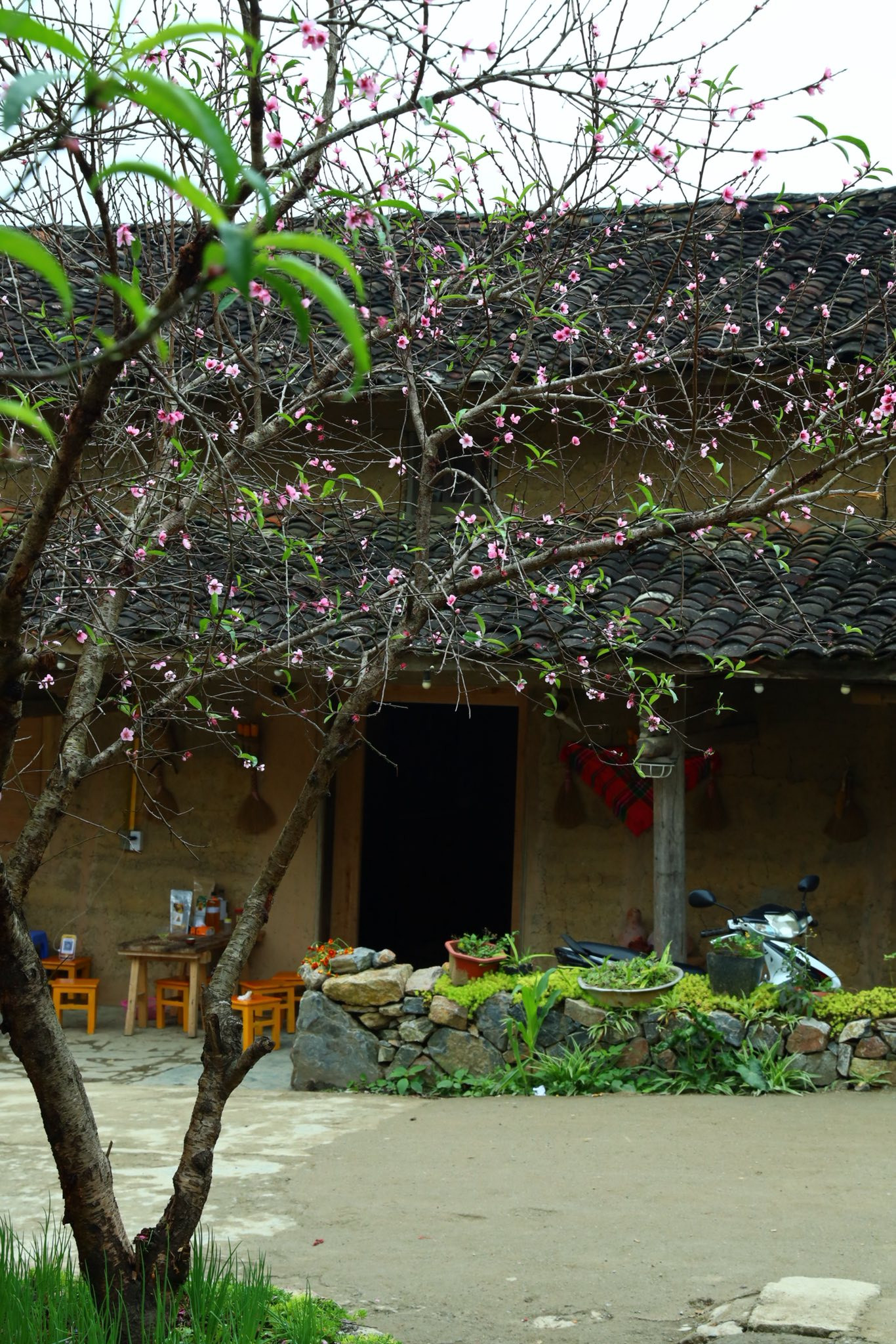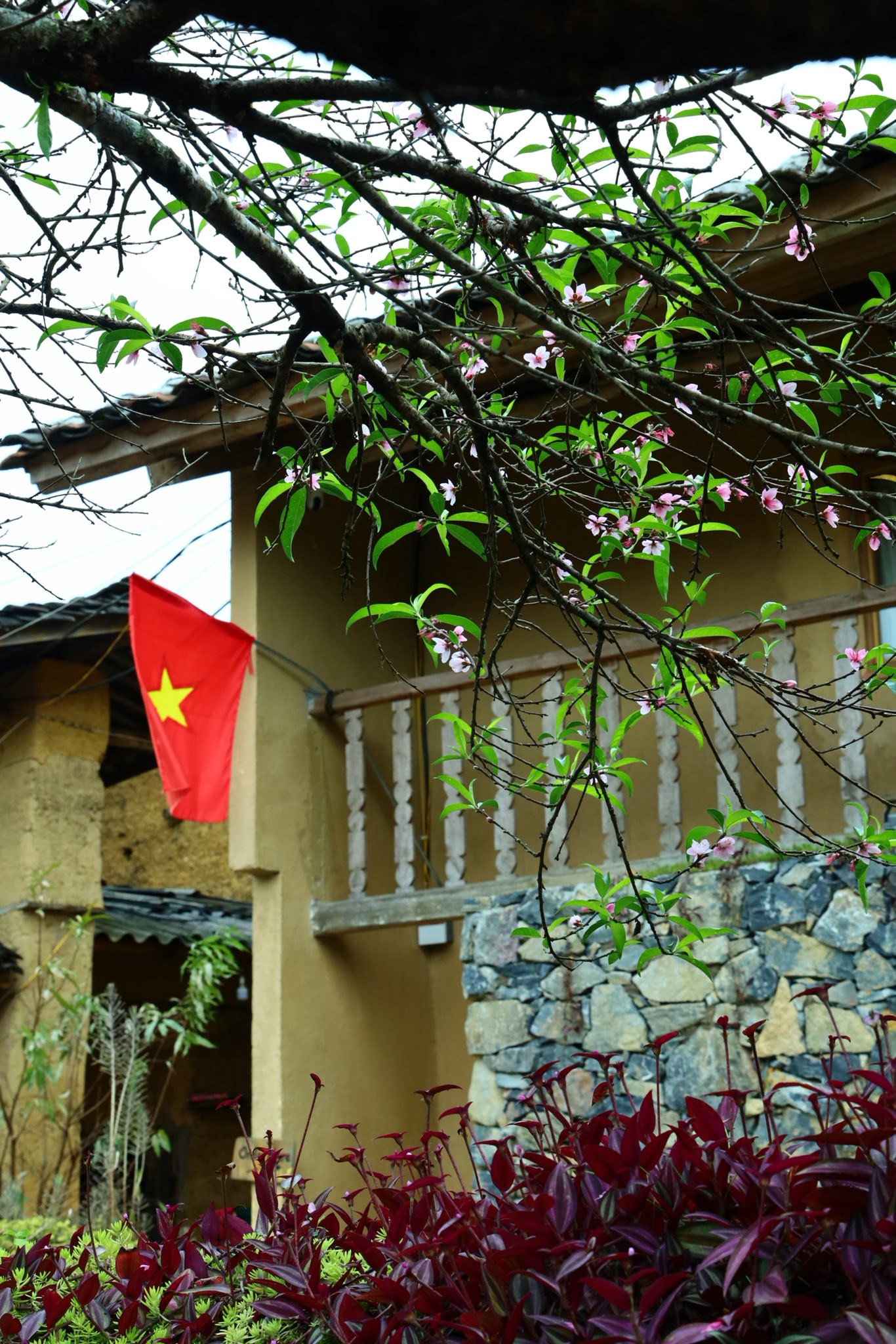 "3 năm trước, mình cũng tới Lô Lô Chải vào tháng 10. Lần quay lại này, mình rất bất ngờ vì thấy hoa đào hé nở khắp làng. Mình cứ ngỡ phải tới đây vào mùa xuân mới được chiêm ngưỡng cảnh tượng nên thơ này", Trang chia sẻ.