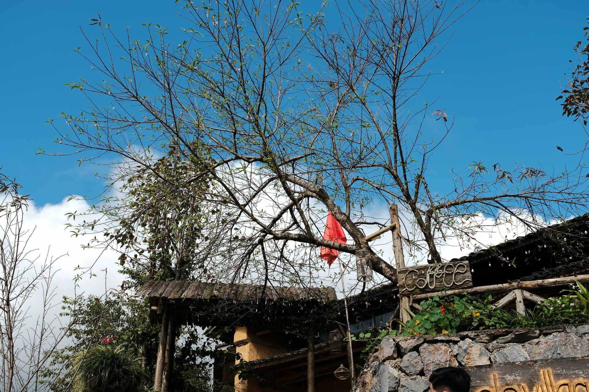 Hoa đào khoe sắc ở Lô Lô Chải vào cuối tháng 10. Ảnh: Vlog của Nguyễn Tiệp