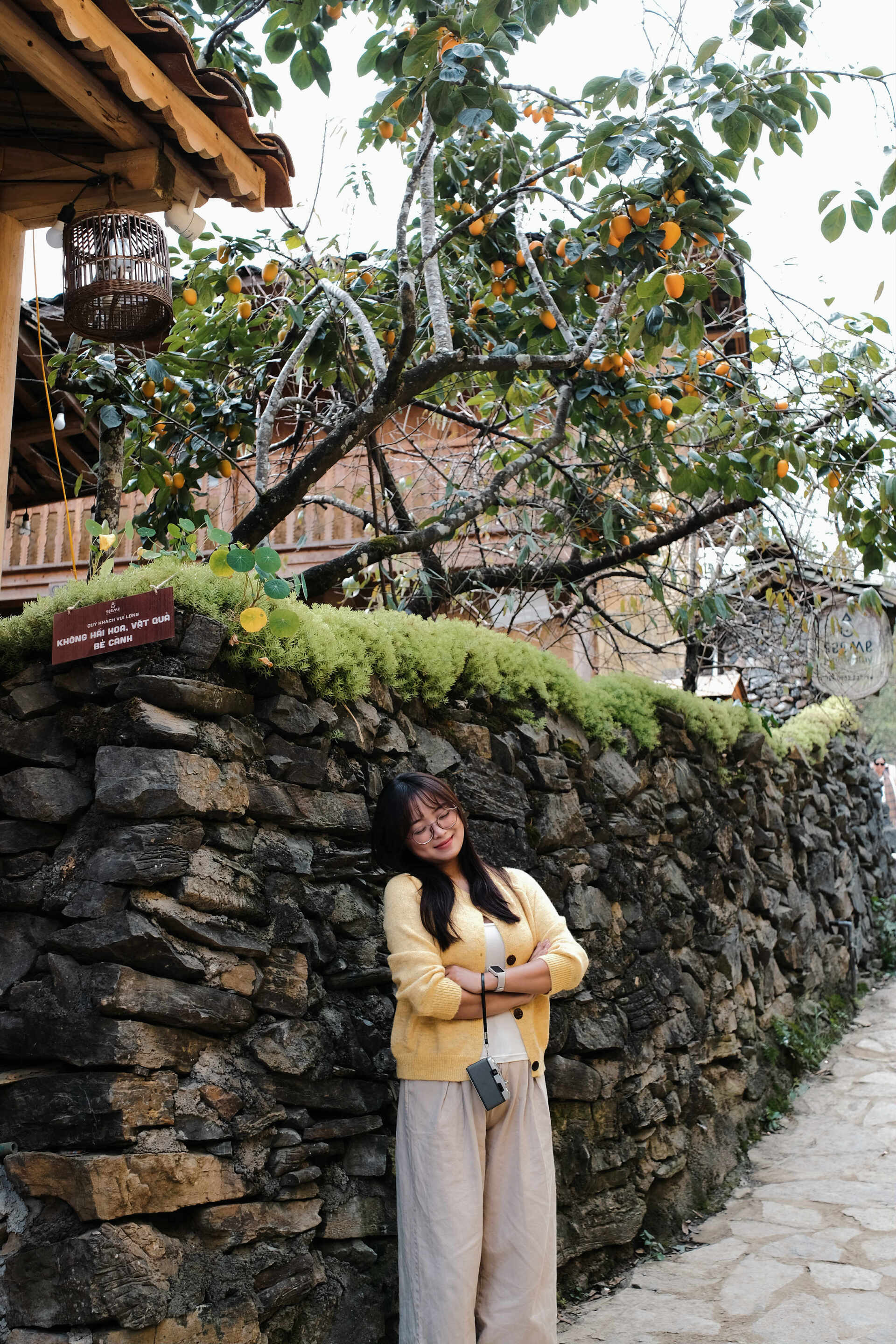 Cô gái tranh thủ ngắm nhìn và thong dong đi bộ khắp ngôi làng, ngắm hoa đào, tận hưởng không khí bình yên. "So với 3 năm trước, ngôi làng phát triển hơn rất nhiều, đầy đủ dịch vụ. Điểm không thay đổi là người dân vẫn hiền lành, chu đáo và hiếu khách", nữ du khách bày tỏ.