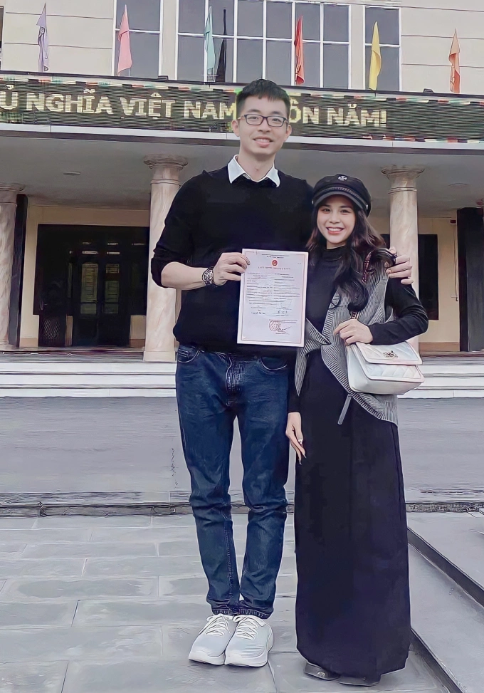 Đôi uyên ương nhận giấy đăng ký kết hôn hôm 16/1, tại UBND huyện Cẩm Khê, Phú Thọ. Ảnh: Nhân vật cung cấp