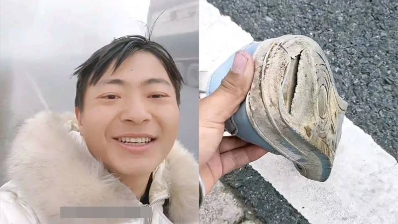 Anh đã hỏng 3 đôi giày khi đi bộ về quê. Ảnh: QQ