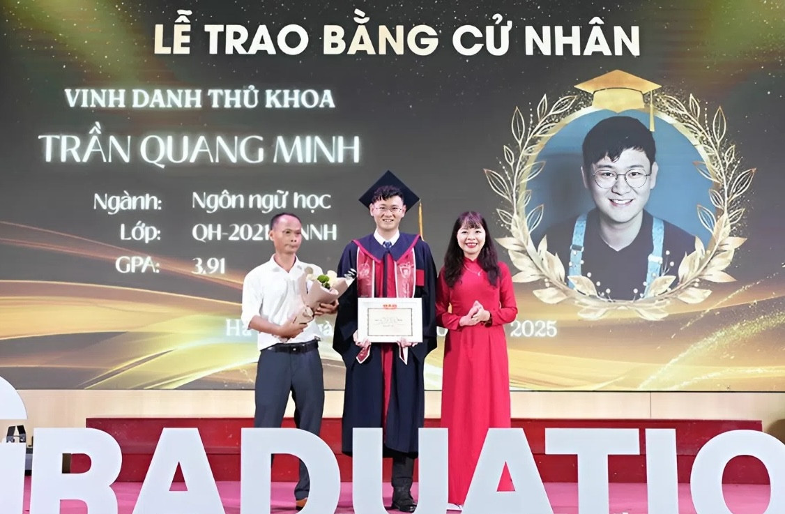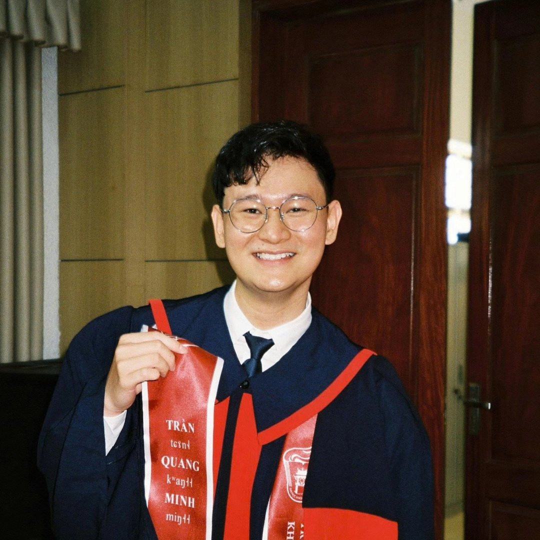 Trần Quang Minh, 25 tuổi, đang theo học chương trình thạc sĩ với học bổng toàn phần tại Đại học Phúc Đán (Trung Quốc), ngôi trường top 30 thế giới theo tổ chức xếp hạng QS 2026. Cách đây gần 3 tháng, chàng trai quê Thái Nguyên đã trở thành thủ khoa đầu ra của Trường Đại học Khoa học Xã hội và Nhân văn (Đại học Quốc gia Hà Nội) với điểm trung bình học tập 3.91/4.