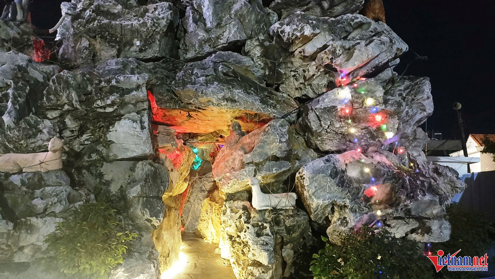 Để dựng nên hang đá phải sử dụng 6.250m3 đá vận chuyển từ Hà Nam (cũ) về. Trung tâm hang đá là hình ảnh Chúa Giê-su được hạ sinh