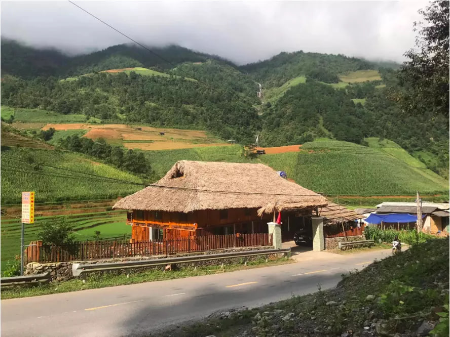 Căn nhà của bọn mình vừa ở vừa làm du lịch. Nó được xây dựng ở mảnh đất rộng 2000m2 ở ven suối. Không thuê người làm, hai vợ chồng tự làm vườn, trồng cây để xây dựng căn nhà của mình. Hằng ngày, anh ấy cũng đi phát cỏ, làm vườn như một nông dân thứ thiệt".