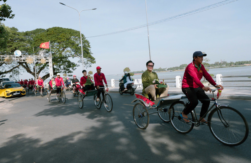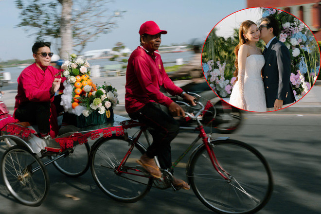 Hình ảnh thú vị được đăng kèm dòng chú thích: “Rước dâu bằng xe lôi tại Tân Châu, An Giang, khi văn hóa miền Tây nhẹ nhàng đi vào ngày cưới. Xe lôi là một phần đời sống rất thật của miền Tây Nam Bộ, đặc biệt là An Giang. Hôm nay, xe lôi chở niềm tự hào của miền Tây, chở văn hóa Việt Nam đến với bạn bè quốc tế”.