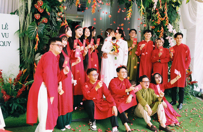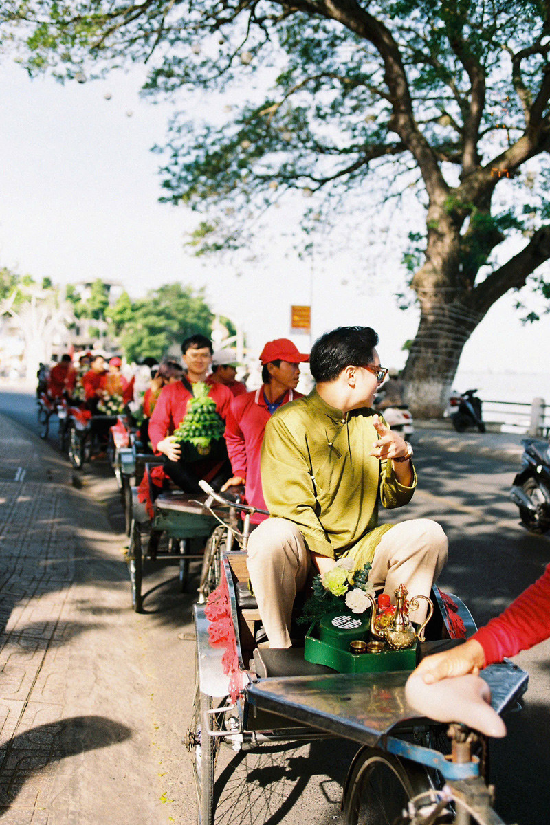 “Tôi mặc áo dài đỏ trông rất bảnh bao, ngồi trên chiếc xe lôi cổ điển, tay bê mâm quả đầy màu sắc, được sắp xếp cầu kỳ. Cả đoàn bon bon trên đường phố, tận hưởng không khí mát mẻ và có chút rạo rực.