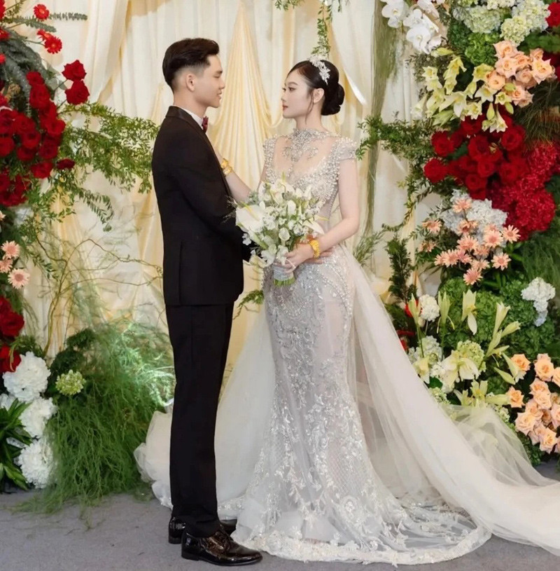 Được biết, bố mẹ cô dâu làm trong lĩnh vực sản xuất hạt điều, còn bố mẹ chồng cung cấp sản phẩm này ra thị trường. Duyên và chồng quen biết nhau cũng nhờ mối quan hệ làm ăn giữa hai bên gia đình.