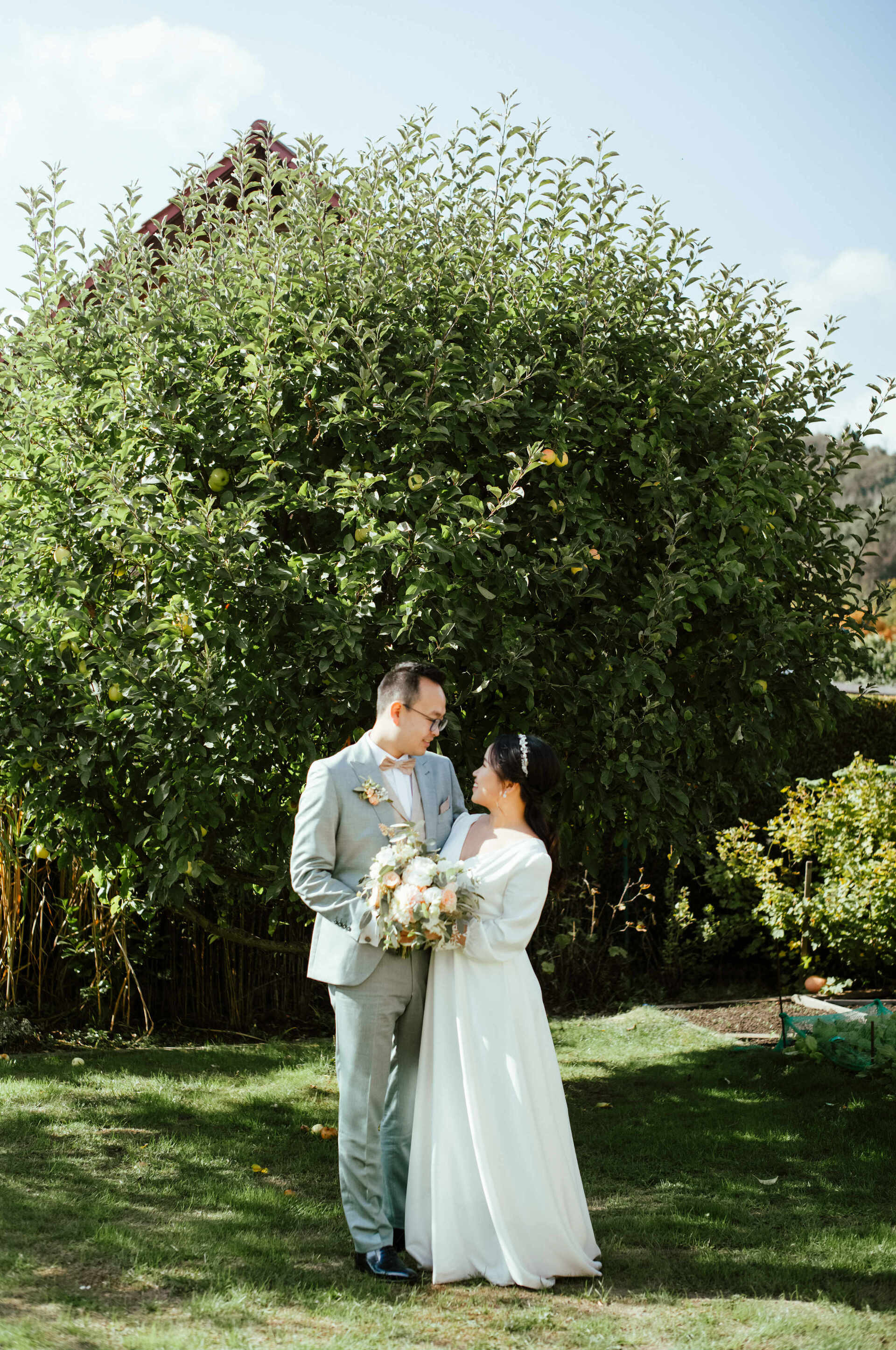 Ảnh cưới của vợ chồng chị Hồng chụp ngay tại vườn nhà