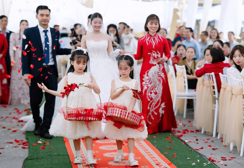 “Trước đó, hai bên gia đình ngồi lại với nhau thống nhất dựng chung rạp, đặt chung cỗ, đón khách đến dự đám cưới trong cùng một ngày. Tổ chức như vậy vừa vui vừa thuận tiện”, Nhi kể.