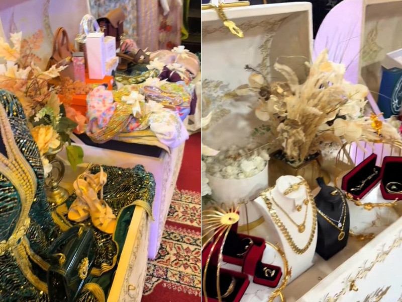 Video còn ghi lại cận cảnh các hòm sính lễ gồm vàng, quần áo, mỹ phẩm…