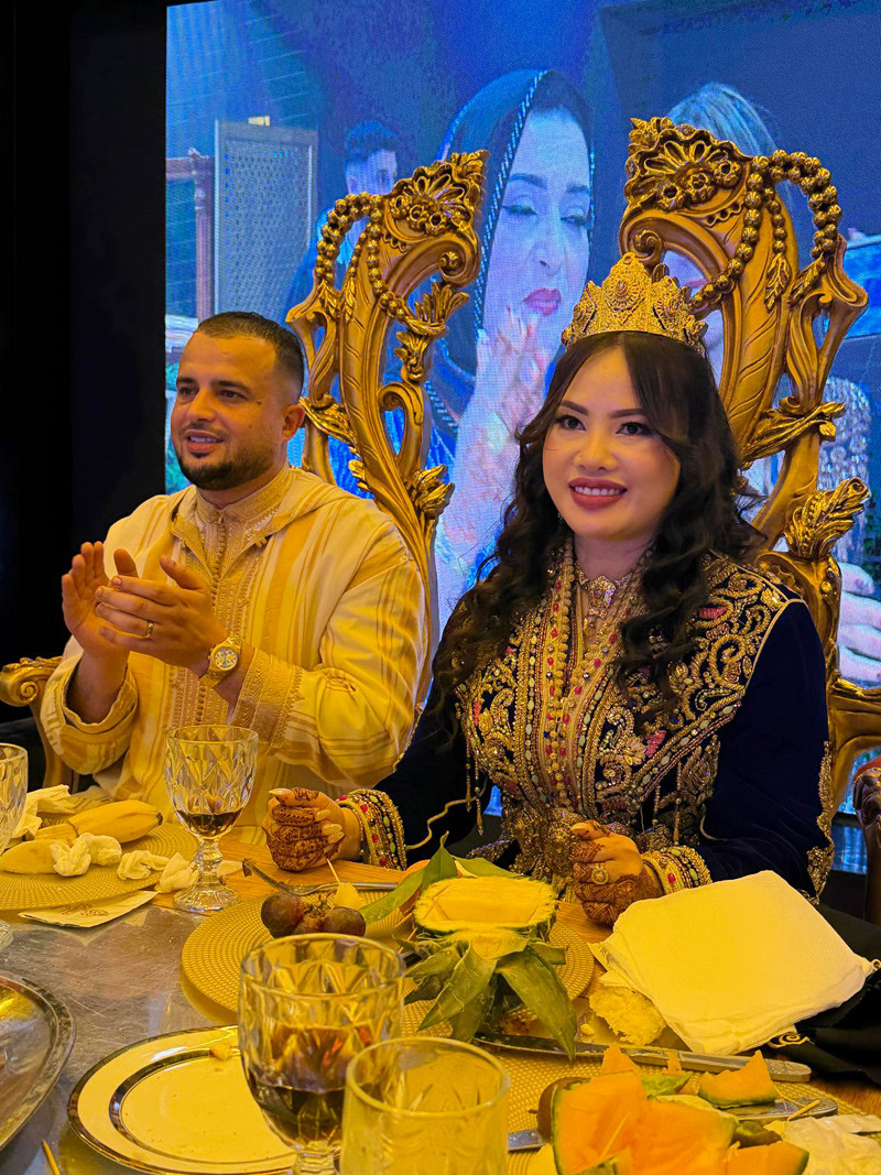 Trong văn hóa cưới hỏi của người Morocco, cô dâu là tâm điểm của hôn lễ. Từ cách ăn mặc, trang điểm đến các nghi lễ đều tập trung vào cô dâu. Điều này khiến chị Hoa thấy lạ lẫm và hạnh phúc khi được tận hưởng đám cưới của riêng mình.