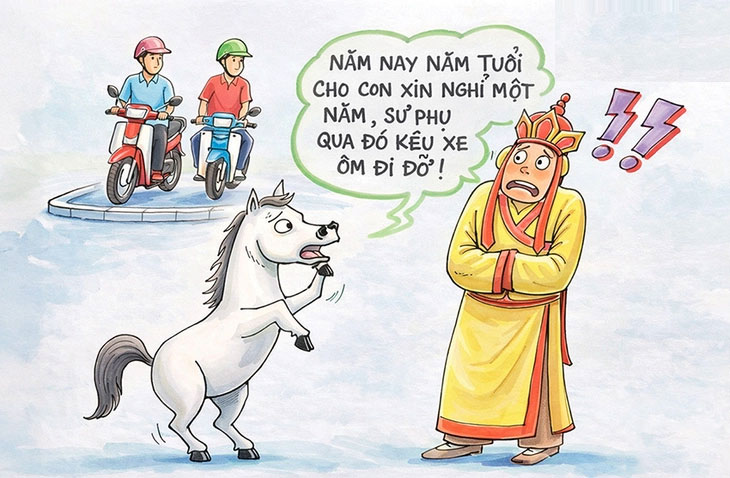 Bạch Long Mã năm nay bận đi làm linh vật ngựa rồi, sư phụ chịu khó thuê xe ôm để 'Tây du ký' tiếp nhé.