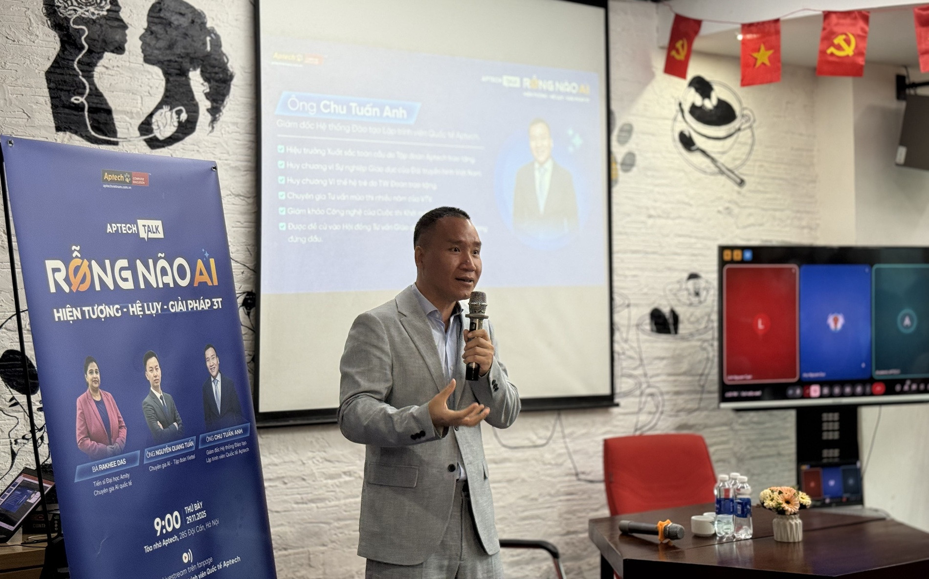 Ông Chu Tuấn Anh, Giám đốc đào tạo Hệ thống Lập trình viên Quốc tế Aptech, chia sẻ về "suy giảm nhận thức do AI". Ảnh: Aptech