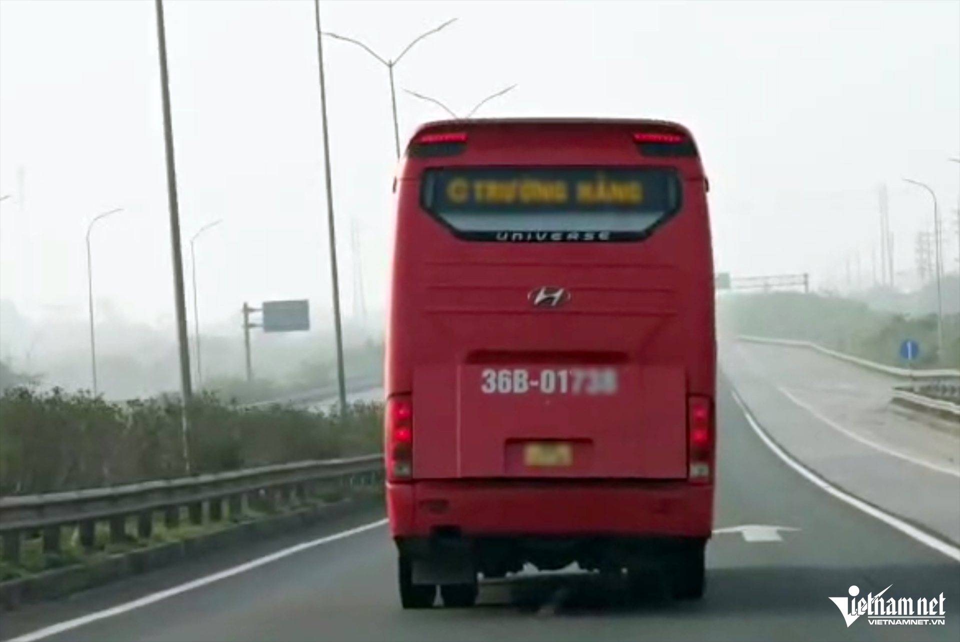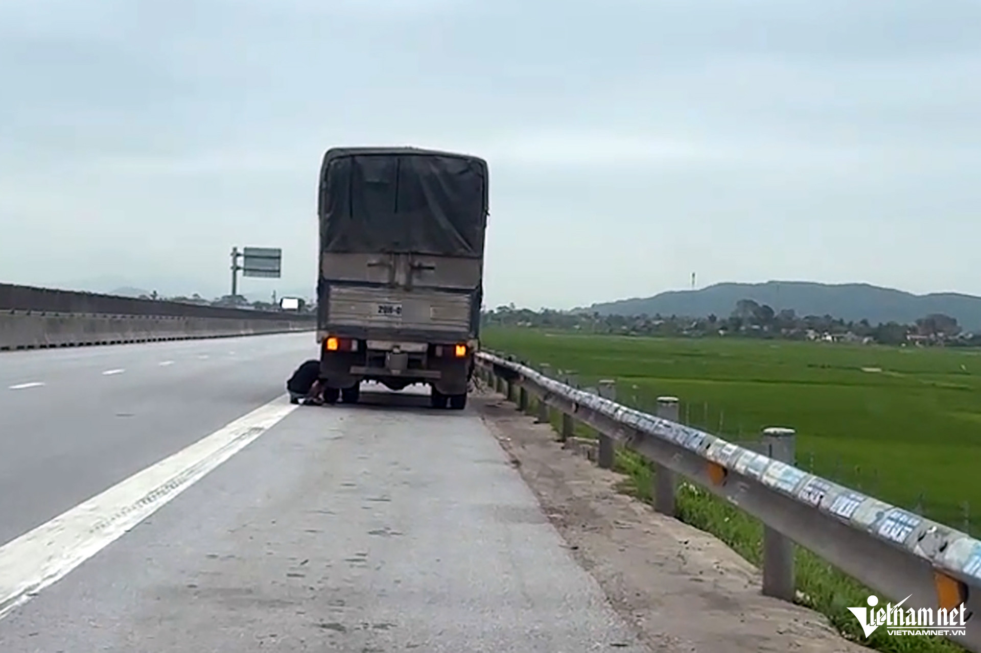 Tài xế ô tô tải mang biển kiểm soát Hà Nội đỗ xe trong làn khẩn cấp mà không đặt vật cảnh báo. Ảnh: Đình Hiếu