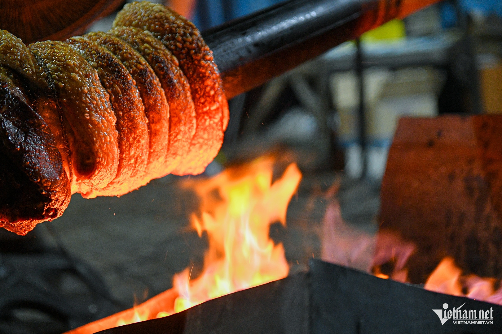 Trong quá trình quay thịt, người thợ liên tục chà đi phần bụi than để miếng thịt đẹp mắt nhất