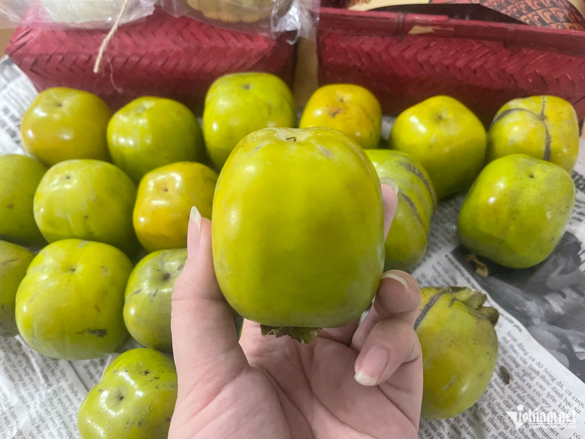 Trong khi đó, hồng da tre thường có kích thước nhỏ, cỡ nắm tay trẻ em và mỗi cân khoảng 7-8 quả, giá dao động 80.000-120.000 đồng/kg.
