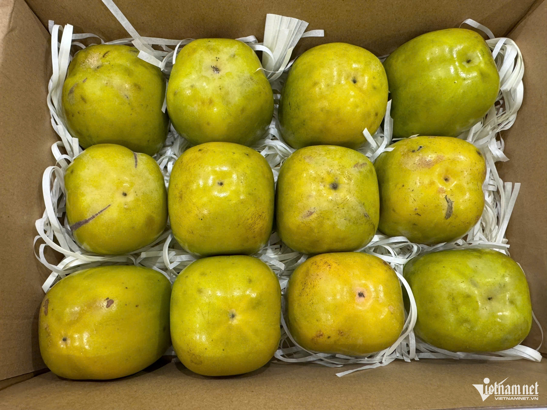 “Loại hồng này bổ đôi ra sẽ thấy màu vàng sậm, tươi như trứng lòng đào, ăn mềm nhưng không nhão. Phần thịt màu trong veo, ngoài dẻo mềm, trong giòn sật, mát như thạch.