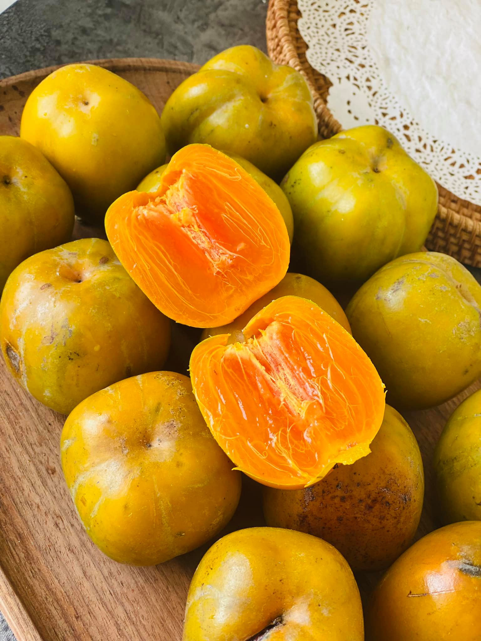 Quả hồng da tre chín nên để ngăn mát, sau 1 tiếng lấy ra, bổ đôi rồi dùng thìa xúc ăn rất ngon. Ảnh: Nguyễn Thu Phương