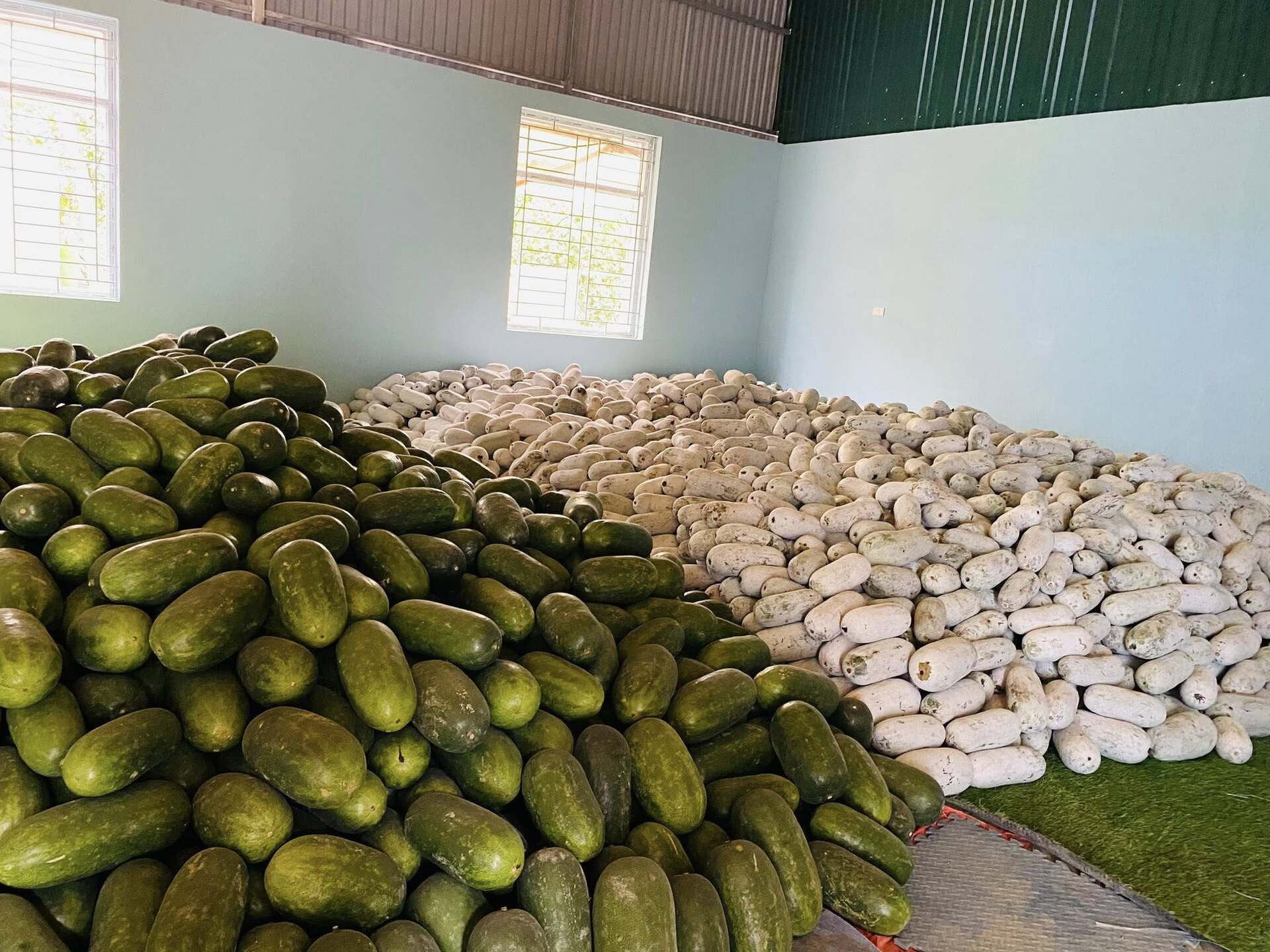 Trái bí xanh thơm Ba Bể được bà con bày bán phổ biến trong các khu chợ, điểm du lịch, điểm lưu trú, ven đường...