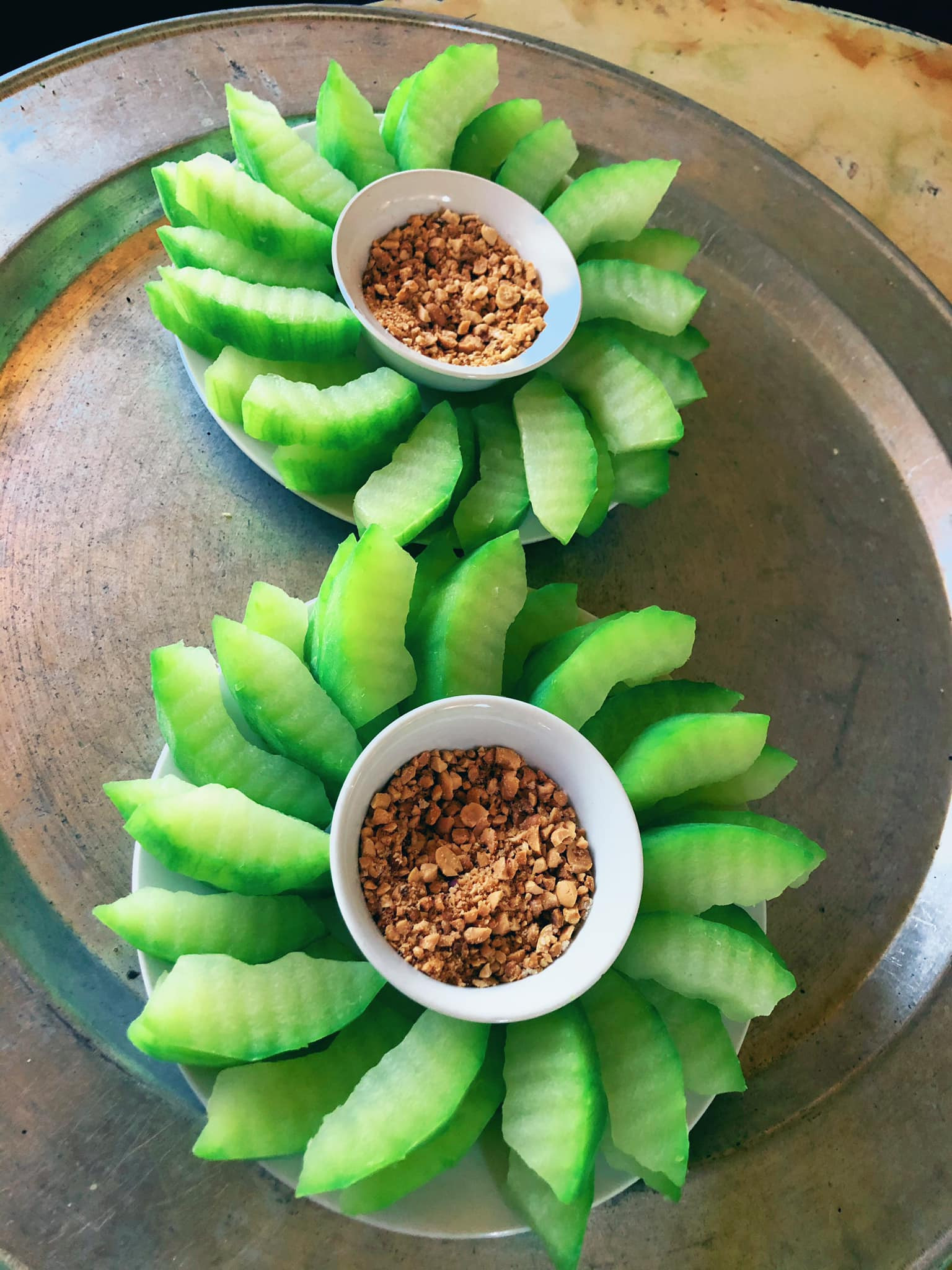 "Bí xanh thơm khi luộc sẽ tỏa mùi hương rất đặc trưng khiến nhiều du khách bất ngờ, tưởng rằng khi luộc đầu bếp đã cho thêm gia vị nào khác. Miếng bí xanh mướt, có độ bùi dẻo, ăn ngọt, không hậu chua, chỉ cần chấm thêm chút vừng là đậm đà", chị Mai nói.