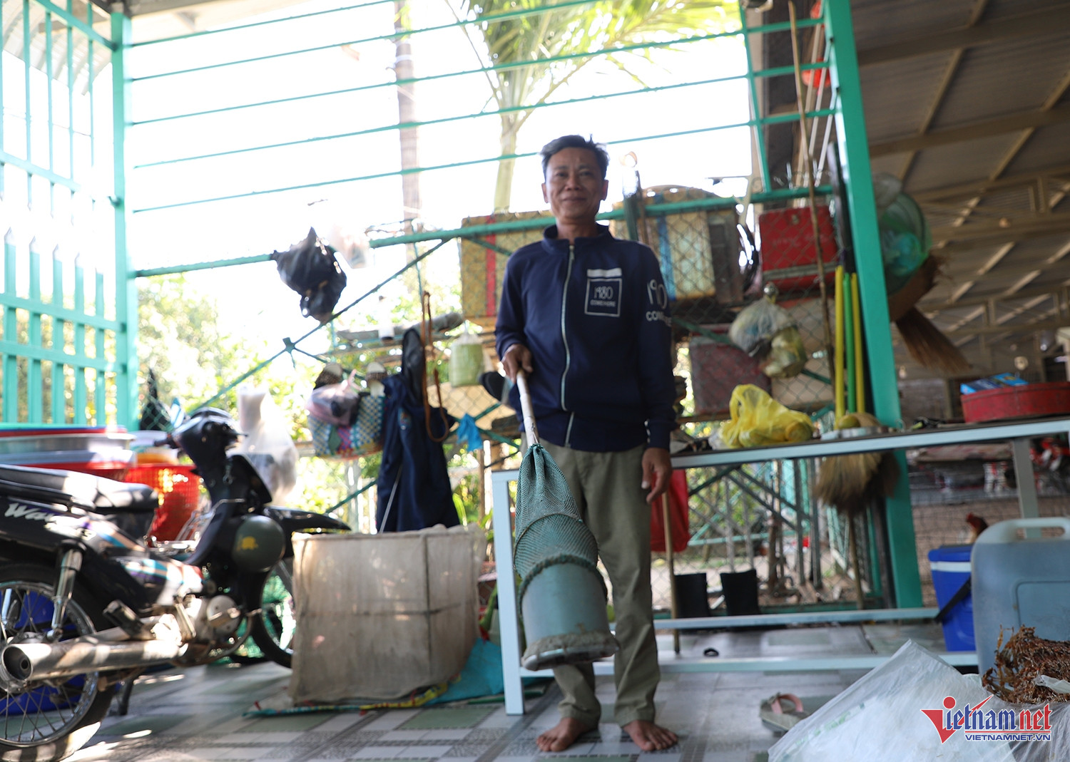 Những ngày này, khi phố xá bắt đầu lên đèn, anh Võ Bé Hoàng (49 tuổi, ngụ ấp Vĩnh Lập, xã An Cư, tỉnh An Giang) lại tất bật chuẩn bị cho một đêm mưu sinh. Sau bữa cơm chiều vội vàng, anh khoác áo mưa, mang theo đèn pin, vợt tre, túi lưới rồi cùng nhóm “thợ đèn”, điều khiển xe máy hướng về vùng ruộng Hà Tiên, cách nhà gần 70km.