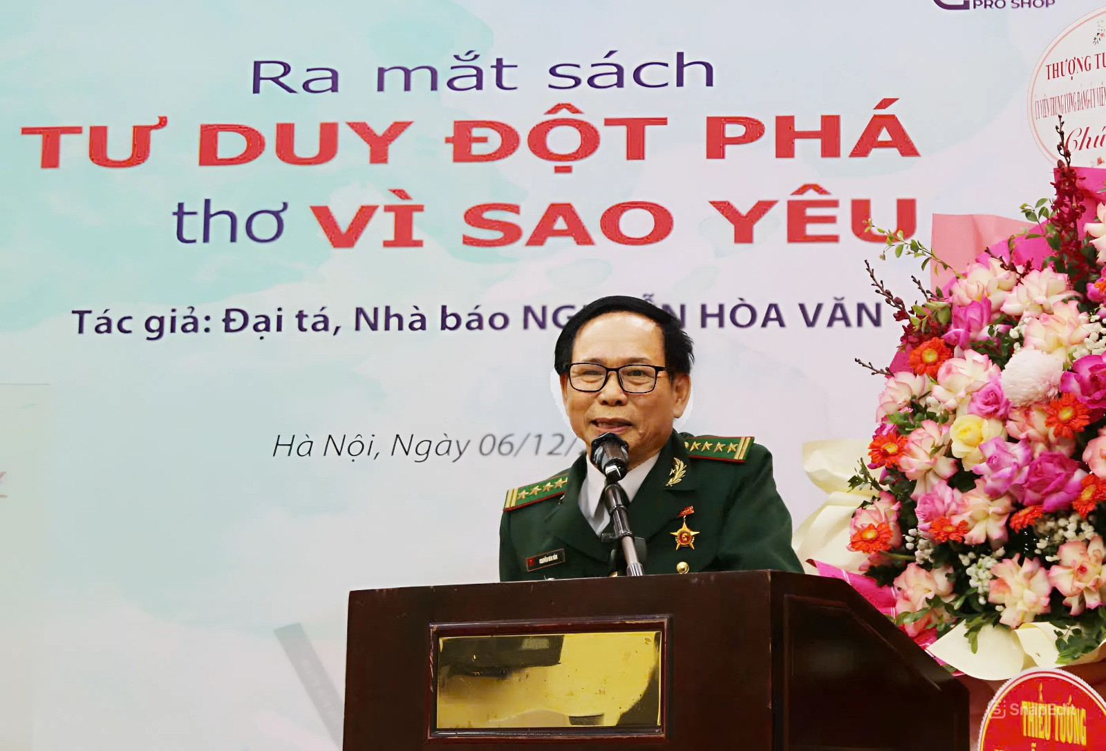 Đại tá, nhà báo Nguyễn Hòa Văn tại lễ ra mắt sách.