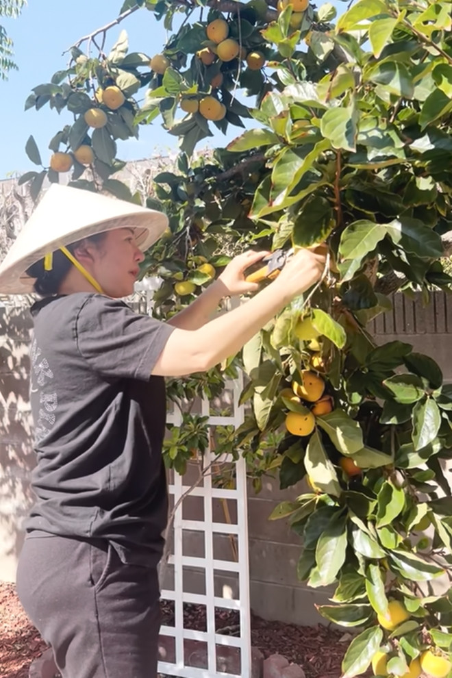 Đặc biệt, cô nhắc đến cây hoa loa kèn - loại cây cô ước ao có từ ngày mới sang Mỹ. Giờ đây ước mơ thành hiện thực, tuy nhiên cả 2 cây đều hay rụng hoa tả tơi khiến vườn rất bẩn.