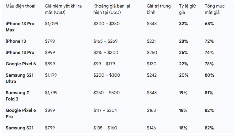 Đơn cử, iPhone 12 Pro Max vẫn có giá bán lại trung bình khoảng 275 USD, tương đương 25% giá gốc, cao hơn rõ rệt so với các đối thủ cùng thời.